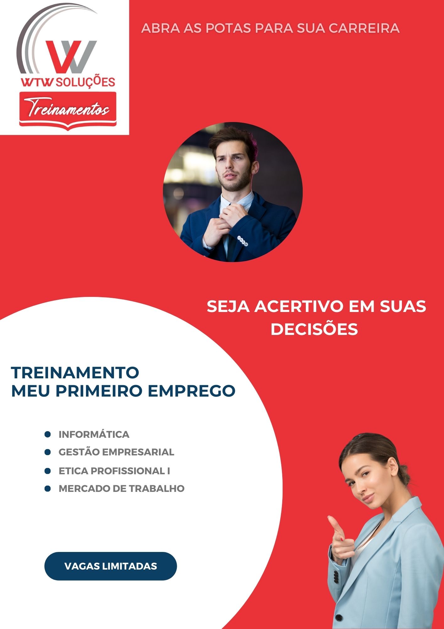 Este curso oferece orientação e treinamento para jovens que estão se preparando para o mercado de trabalho pela primeira vez ou pessoas que estão em busca de mudanças profissionais.